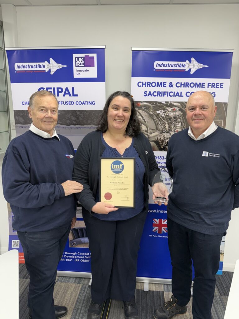 We are delighted for Violaine and grateful to the IMF for recognising her contribution. This achievement reflects both Violaine’s dedication and our collective commitment at Indestructible Paint to driving progress in environmentally responsible, high-performance aerospace coatings.